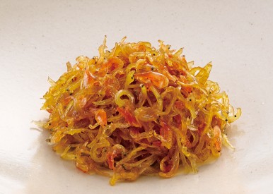商品紹介、小魚 えびちりめん クセのないギンポの味わいに淡い桜色の小えびをトッピング。食卓に映える仕上げです。 賞味期限 50日 保存温度 1℃~10℃ 着色料 赤色106号 保存料 不使用 アレルゲン えび、小麦、大豆